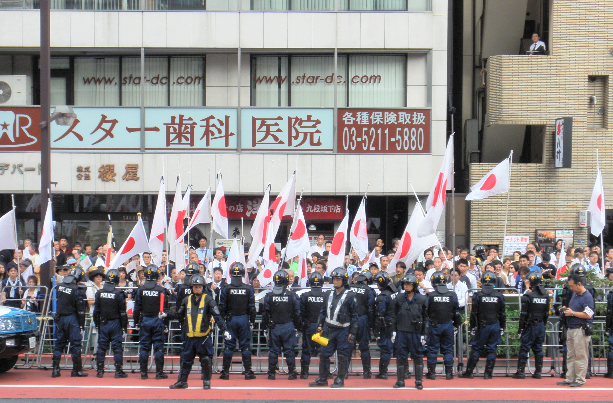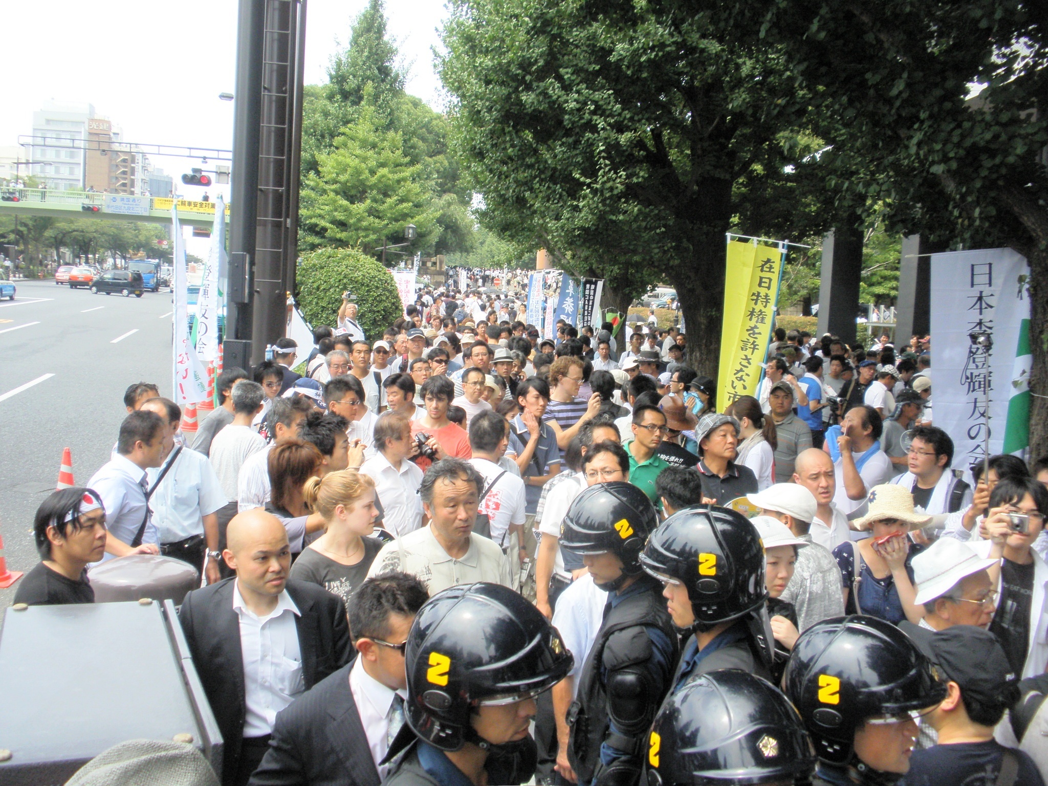 ■8・15靖国神社前「感謝台湾・支持台湾!」街宣活動 【時間】早朝から夕刻まで 【場所】靖国神社前―東京メトロ「九段下駅」1番出口を出てすぐの場所。 【内容】演説とチラシ配布 【主催】台湾研究フォーラム(当日連絡先:090-9332-1881) 【協力】台灣建國應援團 —————————————————————————————————- 靖國神社には大東亜戦争で日本の為に戦い、戦死された台灣人(当時日本人)の軍人・軍属28,000余名が御祀られになっています。 靖国通り、東京理科大学前の様子(平成22年15日(日)10:55)。 毎年多くの団体による活動が行われている。 参拝客の波。御参加の方々は休憩を取りながら、暑さ対策をお忘れなく。 九段下交差点北東側を撮影(H22.8.15 15:23)