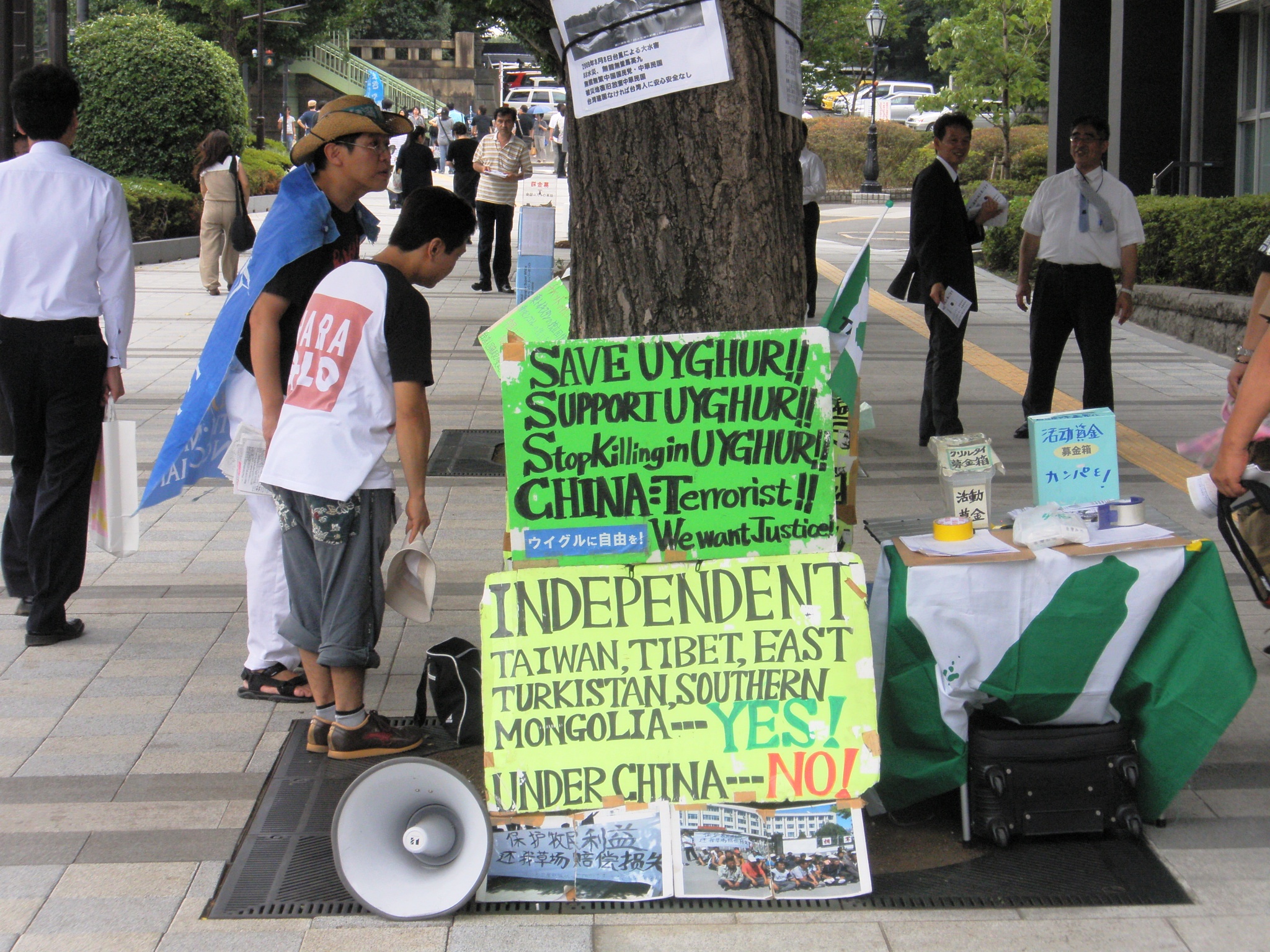 こちらは昨年、日台関係正常化を求める会の皆さんによる活動の様子。 東京メトロ「九段下駅1番出口すぐの場所。後方にイリハム・マハムティ日本ウイグル協会代表