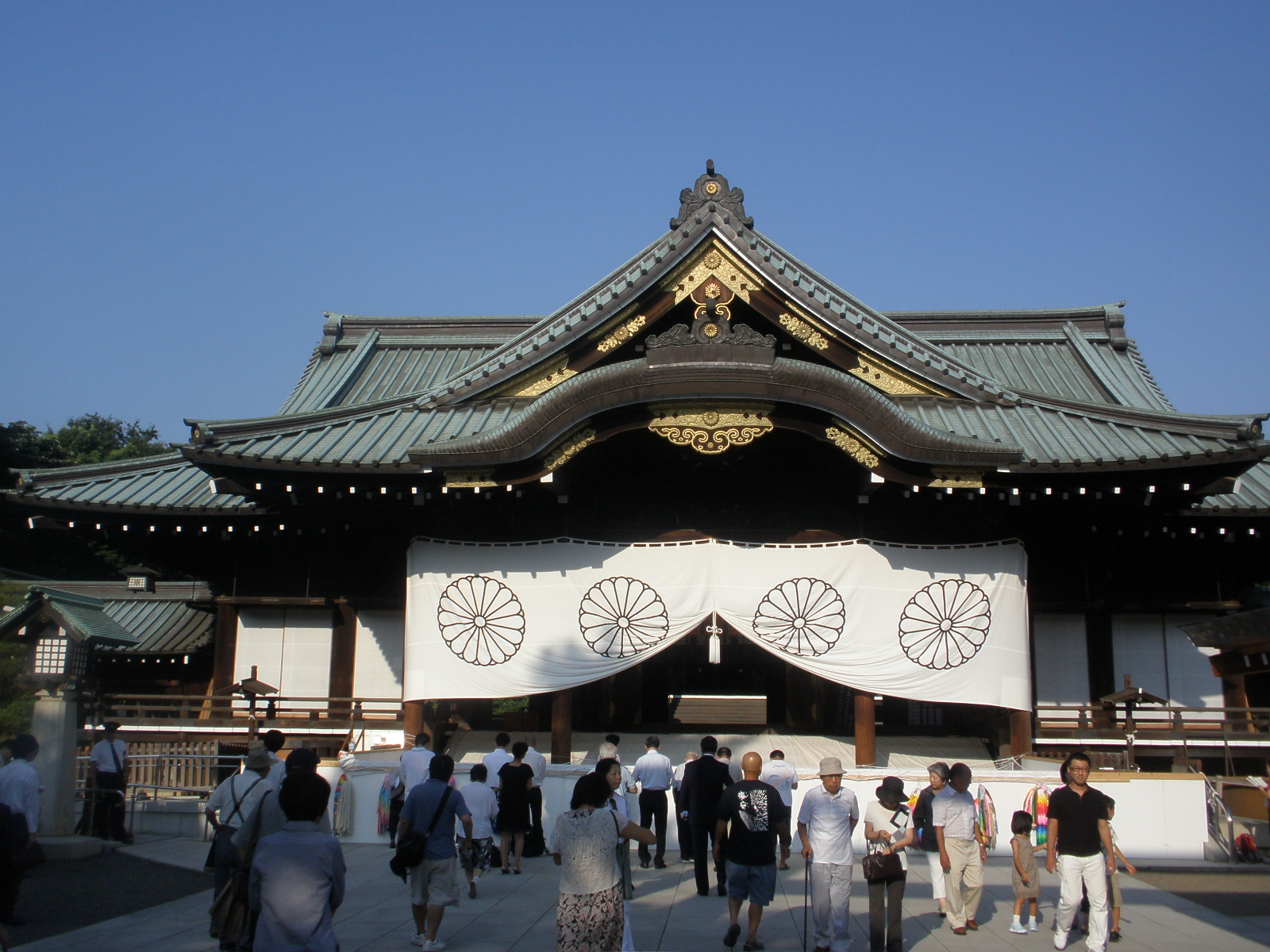 8月15日(月)朝6時55分の靖國神社拝殿、既に多くの参拝者が。 天皇陛下の靖國神社への御親拝は昭和50年11月を最後に36年間途絶えたままです。 御親拝のその日を、一国民として御待ち申し上げます。