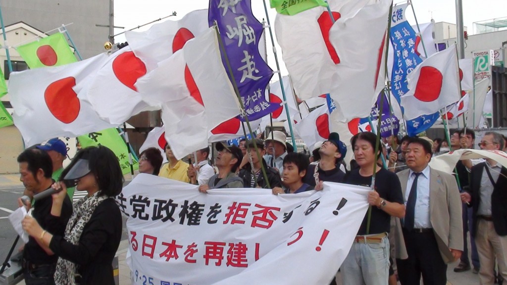 講演後、民主党奈良県総支部連合会と朝鮮総連奈良県本部への抗議に向かう。奈良県文化会館前、出発直前(15:20頃)