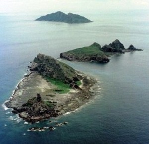 沖縄県石垣市尖閣諸島に属する(手前から)南小島、北小島、魚釣島。東京都の尖閣購入計画の対象はこの三島