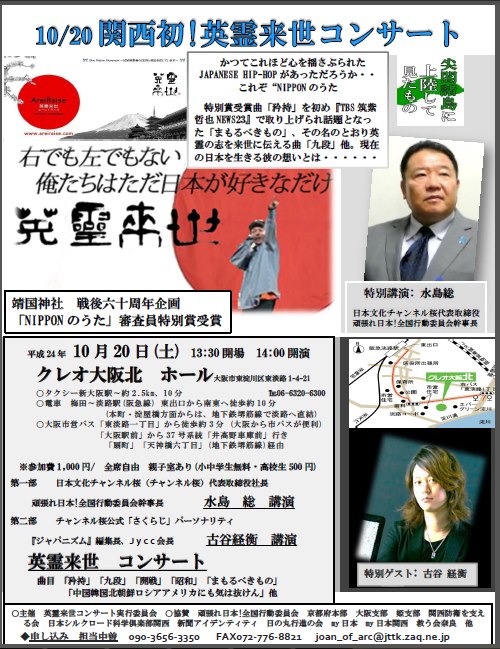 「『心に核武装を』の歌詞が話題となりTV、新聞、 インターネット上など各メディアで物議を醸すこととなる。その後地道に活動の幅を広げ、都内を中心にライブハウス以外でも 積極的に活動。 講演会やシンポジウム等での演奏を続けTVニュース番組出演、 新聞の社会面に登場したり、文芸誌に寄稿したりと多岐に渡り、 非音楽業界から の注目も集め、徐々にその影響力を高めつつある」そうです。