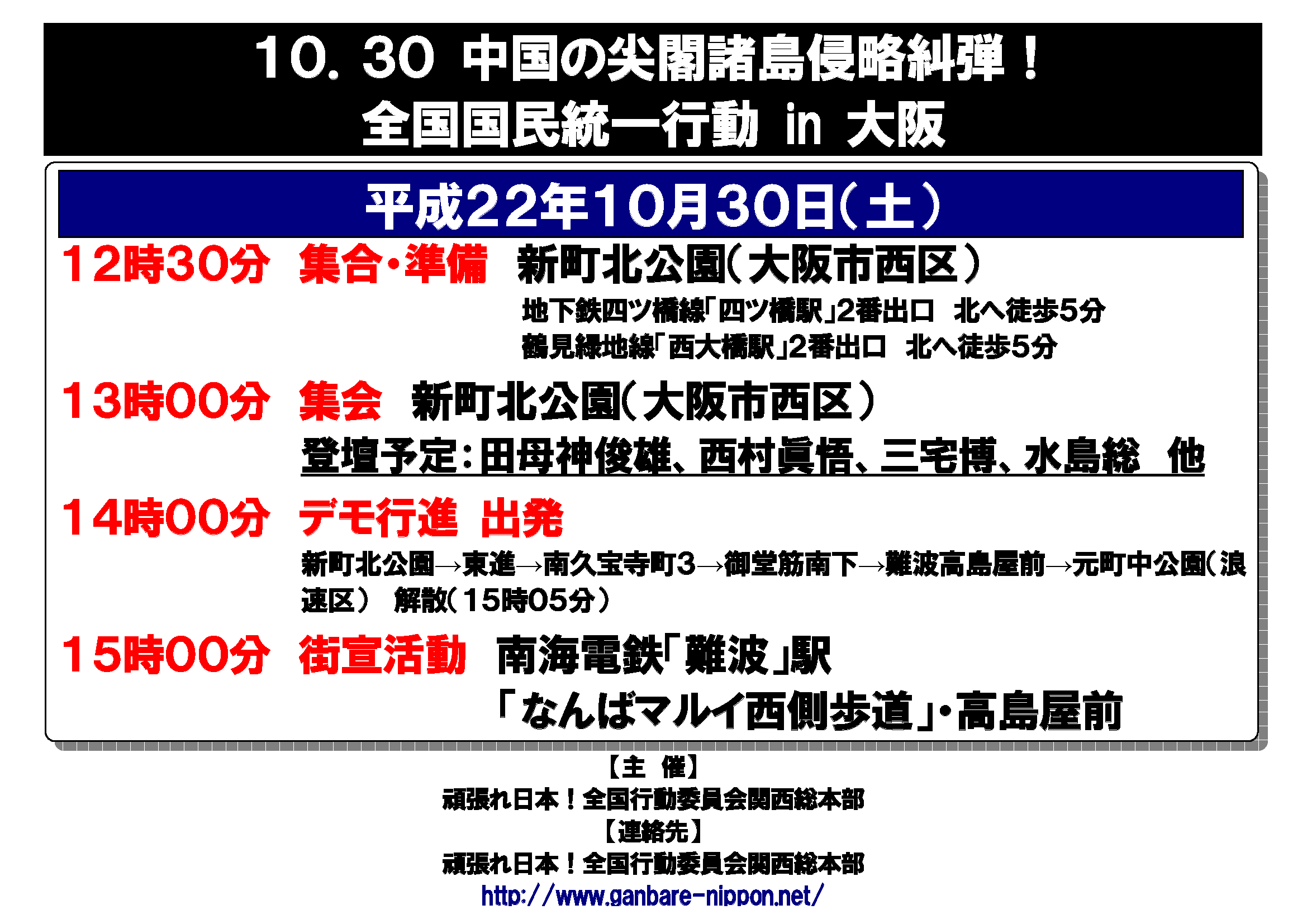 【名称】10.30 中国の尖閣諸島侵略糾弾!全国国民統一行動・大阪