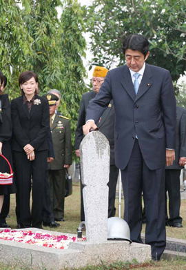 インドネシア・インド・マレーシア訪問中の安部総理がカリバタ英雄墓地にて献花を行っている。