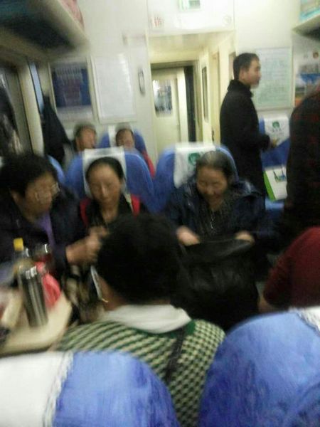 北京へ陳情に向かう南モンゴルのドゥルベド旗モンゴル人達。列車で年寄りのおばあさんも見える。