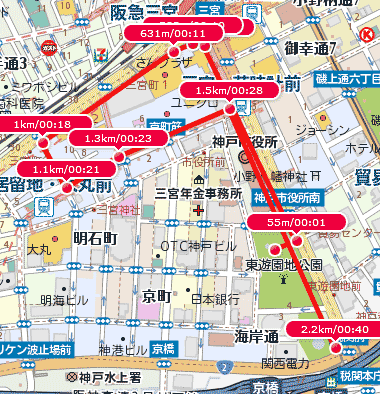 【行程】三宮東遊園地公園(東側) → 神戸市役所 → JR三宮駅南側 → 神戸大丸北側 → 神戸市役所 → 三宮東遊園地公園(南側)