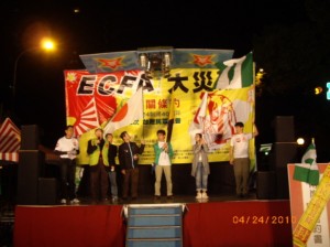 この集会の中で、ひと際盛大な拍手を受けていた男性がいました。鄭自才氏(74歳)。黄文雄氏(蔣経国狙撃未遂事件の実行犯/1970年4月24日於N.Y)の義弟に当たる方だそうです。狙撃事件では両者が実行犯となり、黄文雄氏はその後、陳水扁政権下で「中華民国総統府国策顧問」に就任したとのことです。