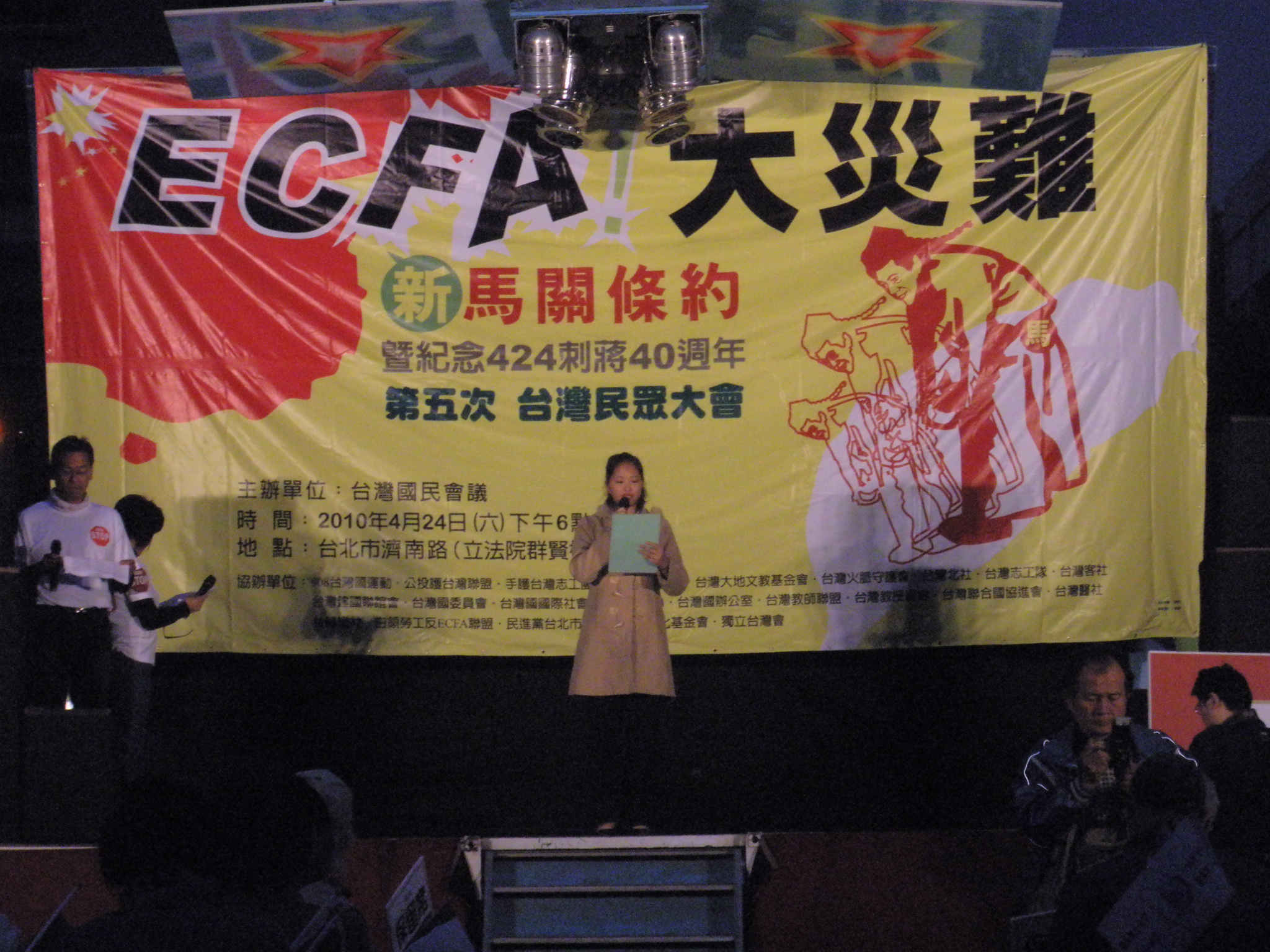 この日は午前中は基隆(キールン)観光、夕方から台湾・中国の両岸経済協力枠組み協議(ECFA)の推進に反対する抗議活動に参加しました。ECFAは中国と台湾間の関税を免税し経済一体化を進める過度な自由貿易政策とお考えください。