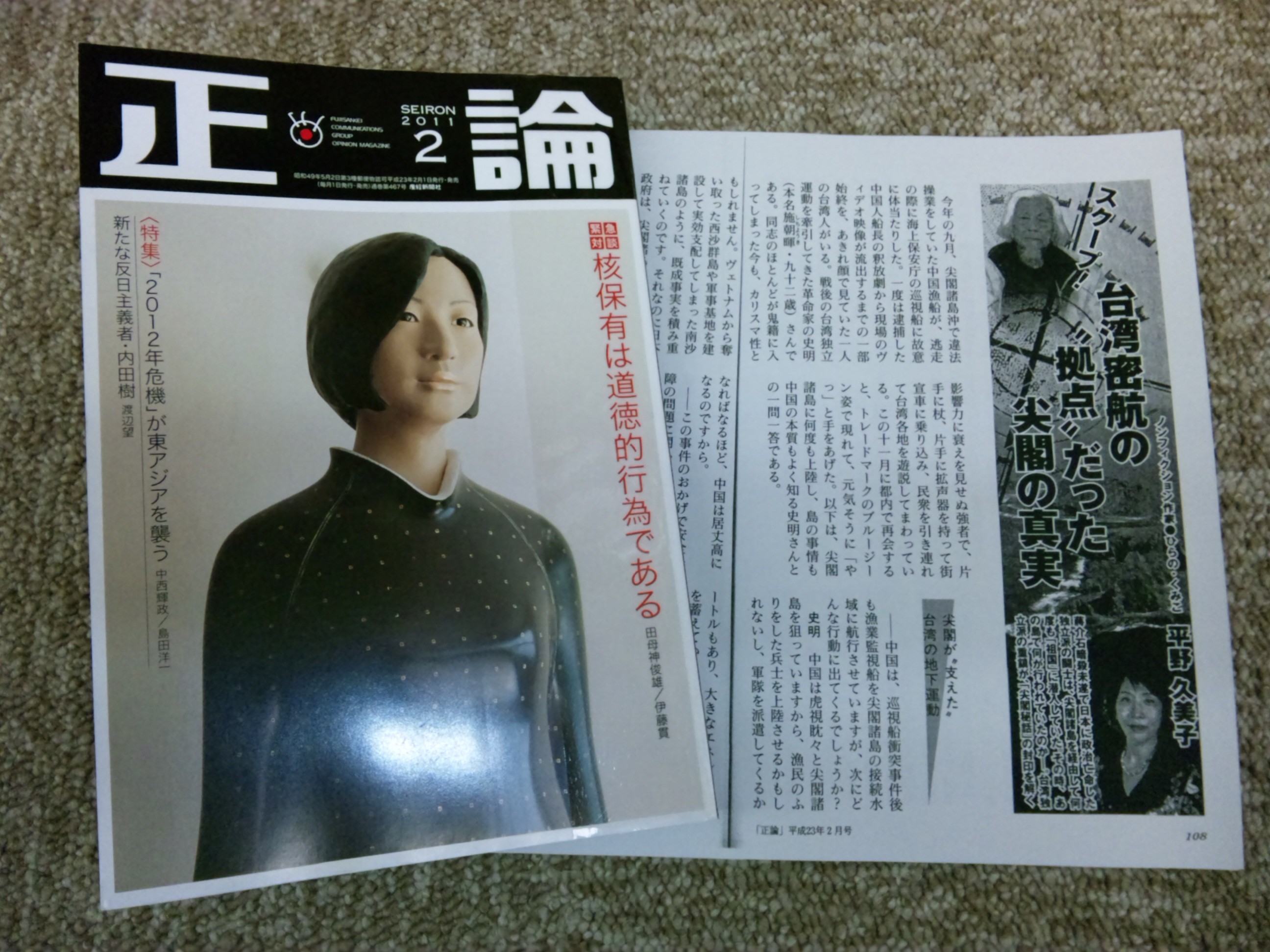 平野久美子さんによる史明氏へのインタビュー記事は『正論』2月号p108-116を御覧ください。気魄と情熱の人、史明の台灣魂は今も健在である。 史明氏「台灣はそのうち必ず独立します、これは歴史の必然です。」