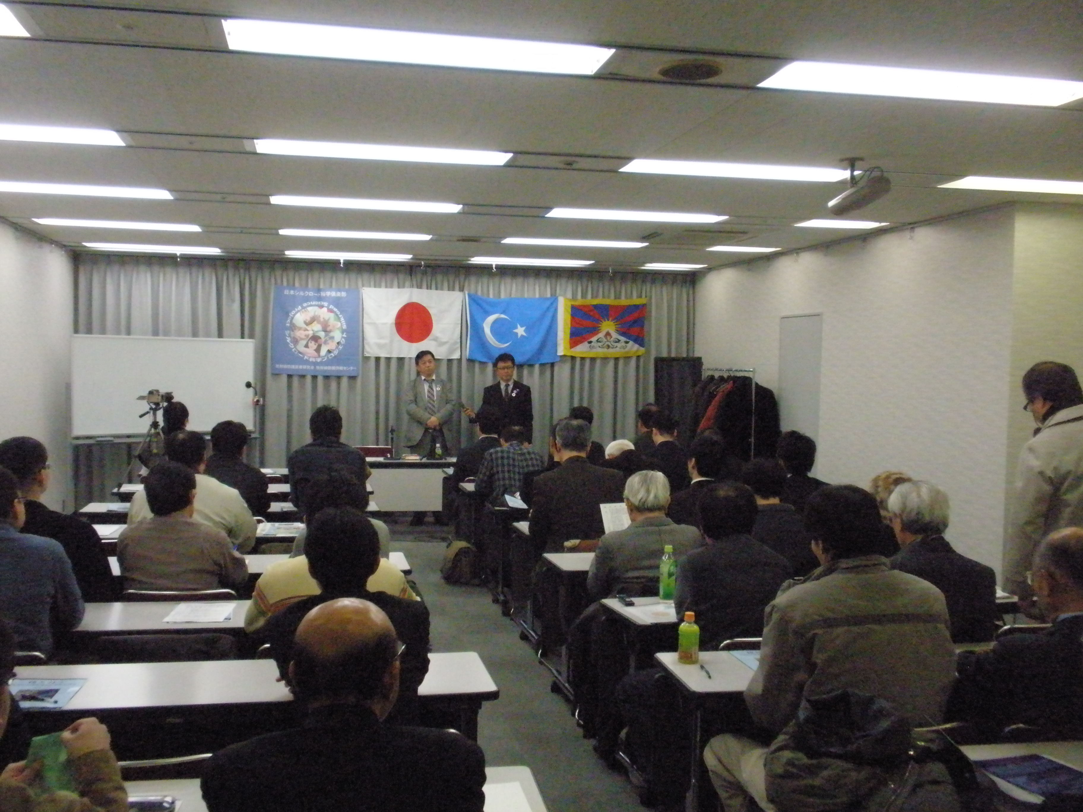 柔和な表情が印象的な高田純教授。祖国日本を愛する科学者である。なお中国共産党からは「右翼物理」と呼称されるという。右写真の右は中曽千鶴子シルクロード科学倶楽部副会長