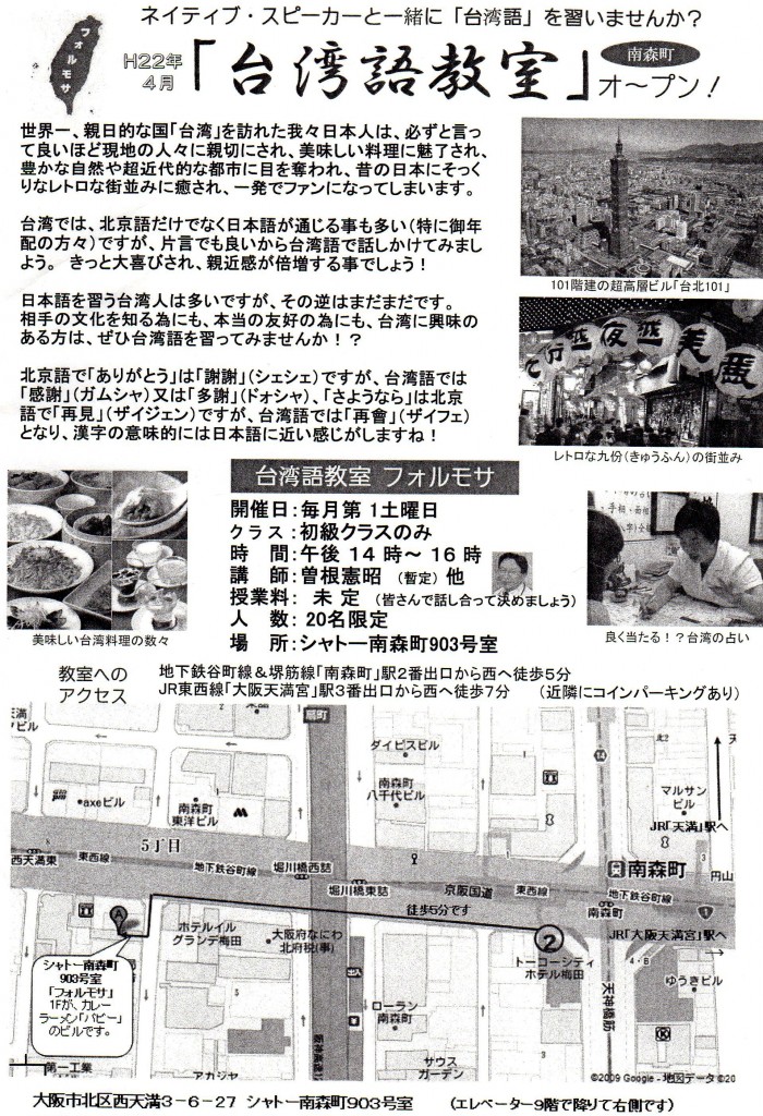 *大阪台湾語教室に御関心の方は、当方に御気軽にお問い合わせください。上記チラシ情報には変更があります。