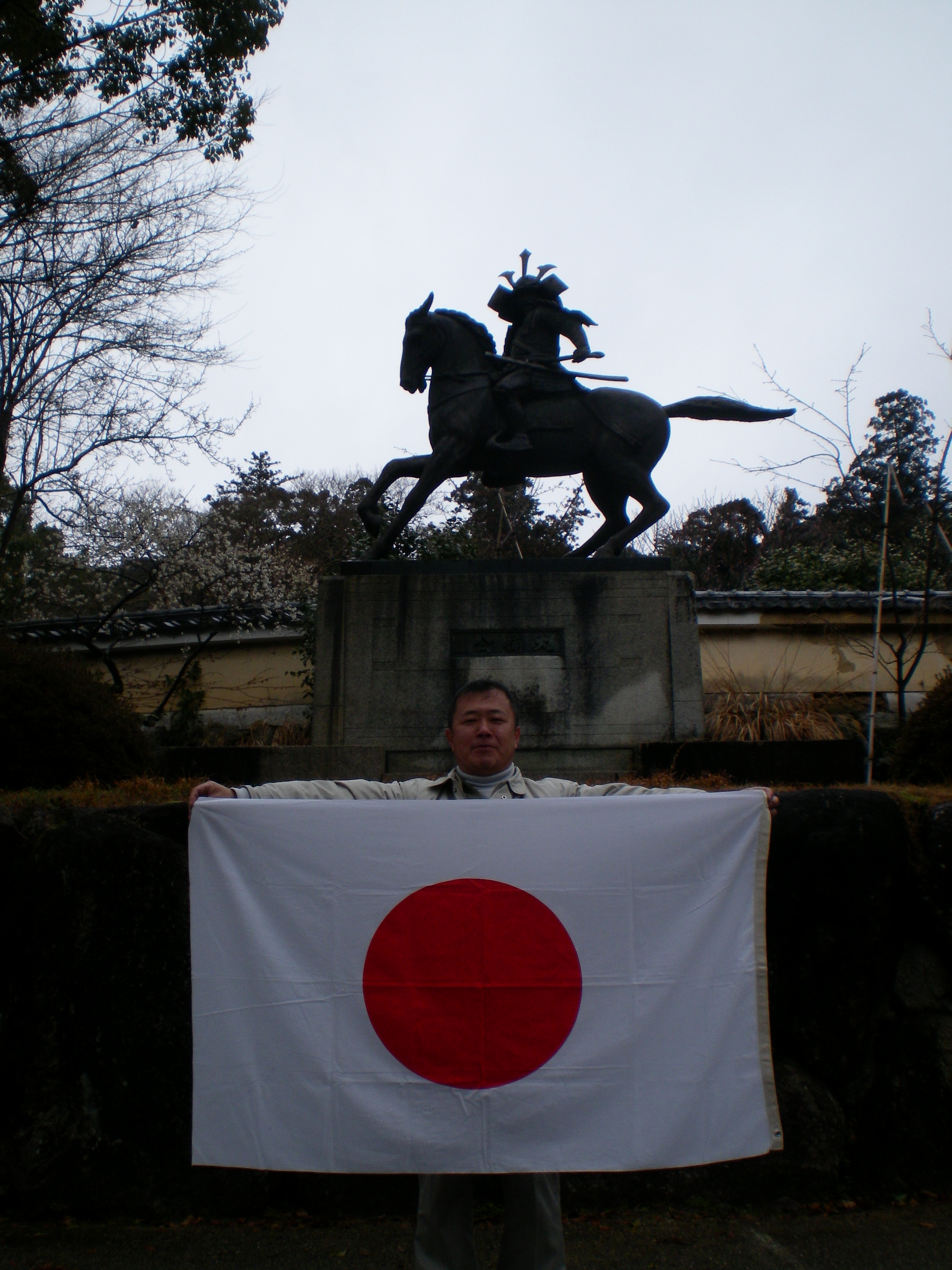 (左)永山英樹台湾研究フォーラム会長 於観心寺楠木正成像前